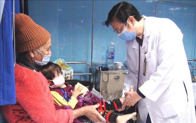 Những ngày này, Khoa Nhi Bệnh viện Hữu nghị Việt Nam –Cuba Đồng Hới, Quảng Bình, số lượng bệnh nhi điều trị nội trú liên quan đường hô hấp tăng gấp đôi, gấp ba so với ngày thường khiến đội ngũ y bác sĩ tại đây phải tăng tần suất làm việc. Ảnh: Võ Dung -TTXVN