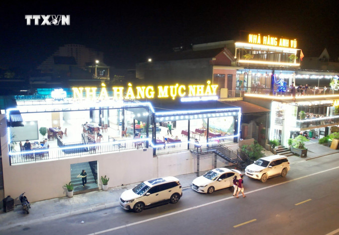 Ông Đặng Văn Chiến, Quản lý Nhà hàng Mực Nhảy (thành phố Đồng Hới, Quảng Bình) cho biết, mỗi ngày nhà hàng chúng tôi tiếp đón, phục vụ khoảng trên 200 - 300 khách du lịch đến ăn uống, thưởng thức ẩm thực, hải sản. Một trong những điểm thu hút du khách là nhà hàng có view biển tuyệt đẹp. Từ nhà hàng du khách có thể ngắm cầu Nhật Lệ 1 lung linh sắc màu về ban đêm.