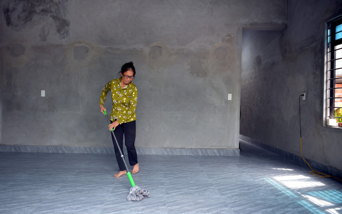 Bà Vũ Thị Thoa (67 tuổi) ở thôn 6, xã Liên Hòa, thị xã Quảng Yên dọn dẹp để chuyển vào nhà mới. Ảnh: Thanh Vân - TTXVN