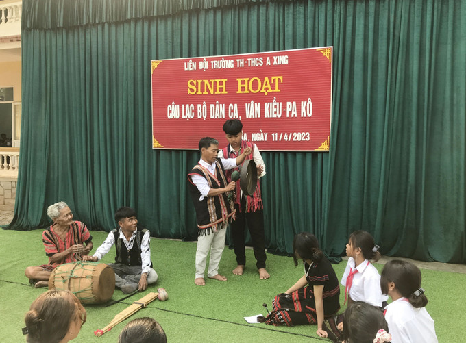 Với mong muốn bảo tồn, lưu giữ và phát huy văn hóa dân gian truyền thống của đồng bào dân tộc thiểu số Pakô-Vân Kiều cho các thế hệ sau, Trường Tiểu học và THCS A Xing, huyện Hướng Hóa, tỉnh Quảng Trị đã thành lập Câu lạc bộ dân ca, Vân Kiều - Pa Kô. Câu lạc bộ được tổ chức sinh hoạt định kì tại trường với sự góp mặt của các nghệ nhân hướng dẫn, biểu diễn và truyền dạy lại các làn điệu dân ca, nhạc cụ truyền thống. Qua quá trình hoạt động, hoạt động này được học sinh vui mừng và tích cực đón nhận.
