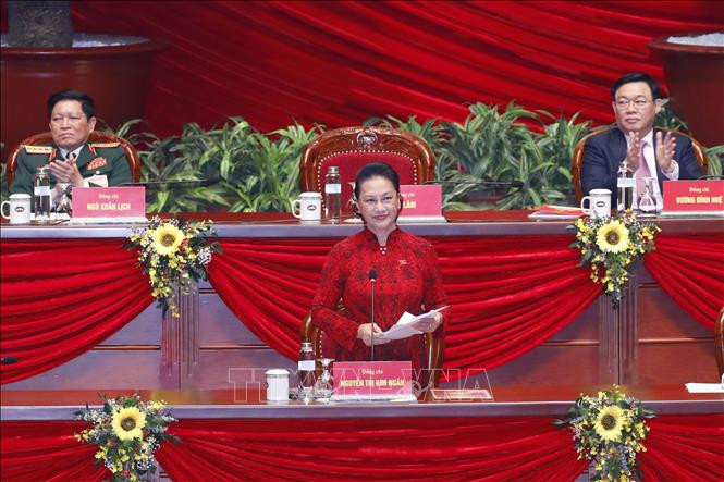 Chủ tịch Quốc hội Nguyễn Thị Kim Ngân thay mặt Đoàn Chủ tịch điều hành phiên bế mạc Đại hội XIII. Ảnh: TTXVN