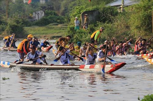 | Hội đua thuyền tại thị trấn Sịa. Ảnh: Hồ Cầu-TTXVN |