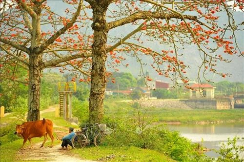 | Hoa gạo nở rực tại huyện Yên Mô (Ninh Bình) Ảnh: Minh Đức - TTXVN |