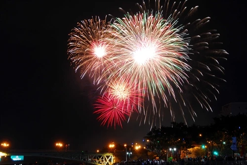 Pháo hoa rực sáng bên sông Sài Gòn (TP Hò Chí Minh). Ảnh: TTXVN