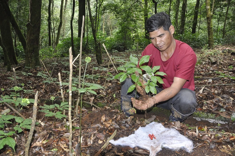 Đồng bào Xê-đăng ở huyện Tu Mơ Rông trồng và phát triển sâm Ngọc Linh. Ảnh: Văn Phương