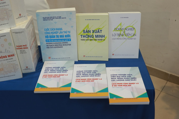 Sách viết về đô thị thông minh được trưng bày tại tọa đàm. Ảnh: Quang Châu - TTXVN