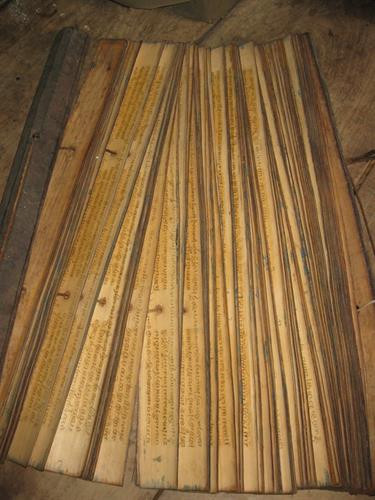 Sách lá thường được chia làm 3 bộ gồm: bộ văn thơ, bộ gia phả và bộ võ thuật. Những bộ sách lá có độ tuổi từ hàng trăm, thậm chí là vài trăm năm vẫn còn sáng màu mực. Trước đây, nhà ông Hồ Thong có 3 bộ sách lá nhưng ông đã tặng cho Bảo tàng Trung ương một bộ và Bảo tàng Tổng hợp tỉnh Quảng Bình một bộ.