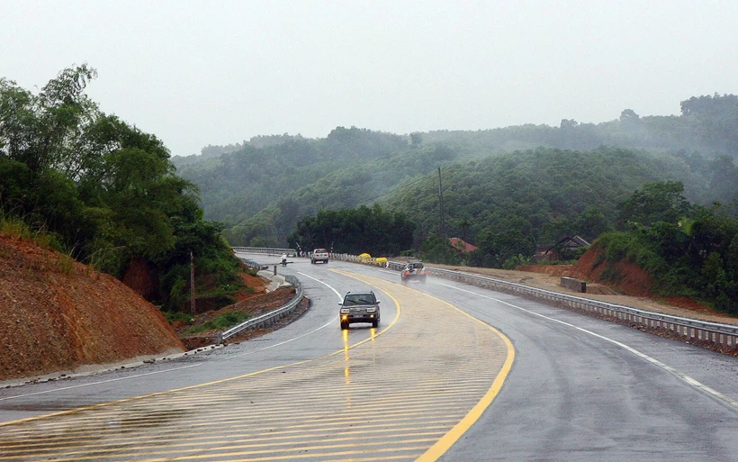Một đoạn đường cao tốc Nội Bài - Lào Cai trong quá trình hoàn thiện. Ảnh: Huy Hùng- TTXVN