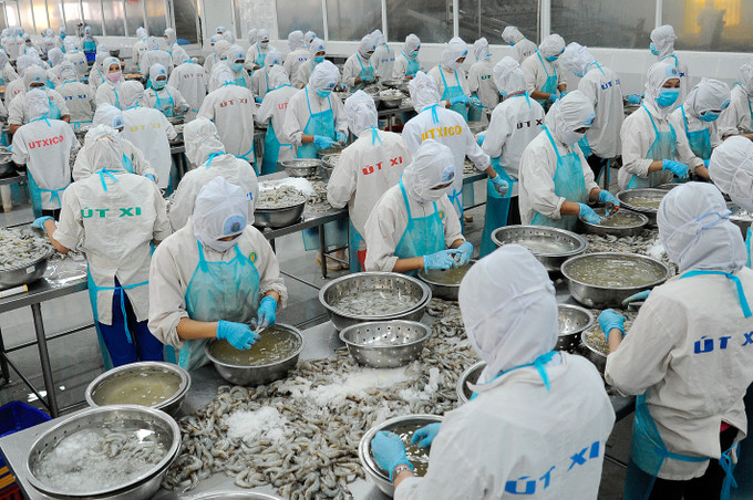 Các doanh nghiệp chế biến thủy sản của tỉnh Sóc Trăng giữ nhịp tăng trưởng tốt đã giúp tạo công ăn việc làm ổn định cho người lao động. Ảnh: An Hiếu