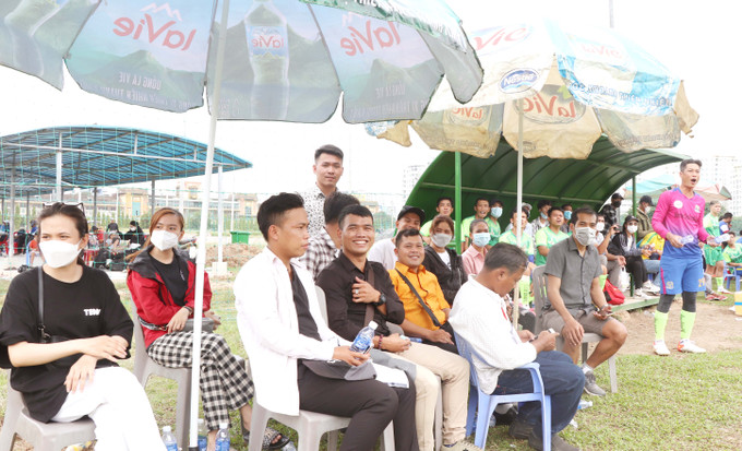 Cổ động viên nhiệt tình cổ vũ các đội bóng trong khuôn khổ giải bóng mừng Tết cổ truyền Chôl Chnăm Thmây 2022