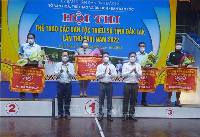 Sau ba ngày (8 - 10/4) diễn ra sôi nổi, Hội thi thể thao các dân tộc thiểu số tỉnh Đắk Lắk năm 2022 đã bế mạc vào chiều 10/4 tại Nhà thi đấu Thể dục - Thể thao tỉnh Đắk Lắk. Hội thi do Sở Văn hóa, Thể thao và Du lịch tỉnh phối hợp với Ban Dân tộc tỉnh Đắk Lắk tổ chức.