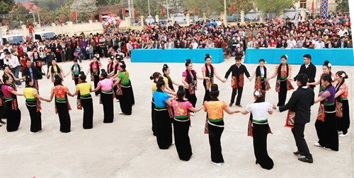 | Điệu xòe cổ dân tộc Thái trong Lễ hội "Xên Mường" (lễ cúng mường đầu năm), xã Hua La, thành phố Sơn La. |