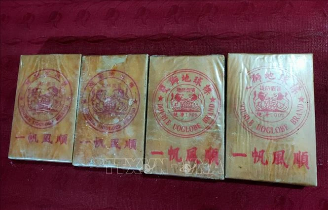 Tang vật thu giữ 4 bánh heroin. Ảnh: TTXVN phát