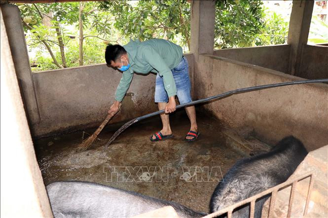 Lao động tại huyện Mường La trở về hiện không có việc làm, phải tranh thủ chăn nuôi gia súc. Ảnh: Hữu Quyết – TTXVN