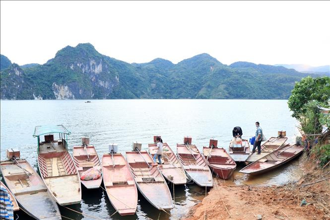 Khu vực neo đậu thuyền đánh bắt thủy sản của người dân tái định cư tại bản Lếch, xã Chiềng Lao, huyện Mường La, tỉnh Sơn La. Ảnh: Hữu Quyết – TTXVN