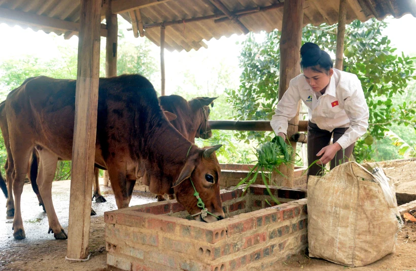 Chị Thảo cho hay, gia đình chị có diện tích đất đồi, nương nhiều, do đó, chị đã quyết định vay vốn tín dụng chính sách để mở hướng phát triển kinh tế với mô hình chăn nuôi bò. Hiện nay, đàn bò của gia đình chị Thảo đã sinh sản được 8 con, bán với giá hơn 10 triệu đồng/con.