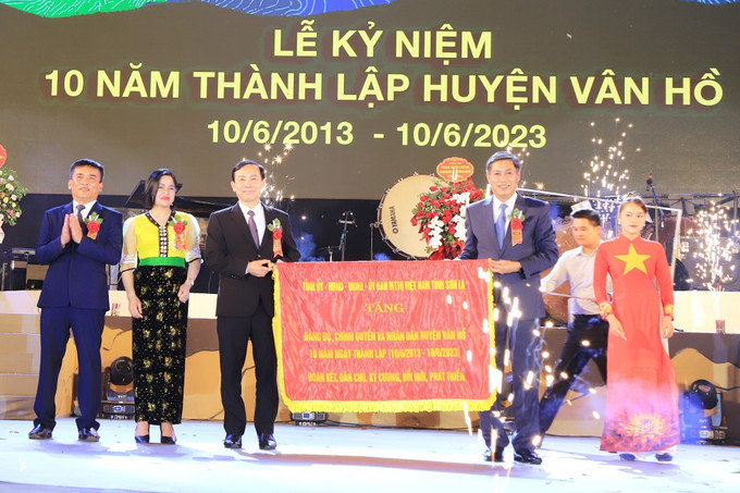 Tại buổi Lễ, Bí thư Tỉnh ủy Sơn La Nguyễn Hữu Đông biểu dương sự nỗ lực và những thành tích mà Đảng bộ, chính quyền, nhân dân các dân tộc huyện Vân Hồ đã đạt được trong 10 năm qua; đề nghị Đảng bộ, chính quyền và nhân dân huyện Vân Hồ tiếp tục phát huy tinh thần đoàn kết, nâng cao năng lực lãnh đạo, sức chiến đấu của các tổ chức đảng, xây dựng hệ thống chính trị trong sạch, vững mạnh.