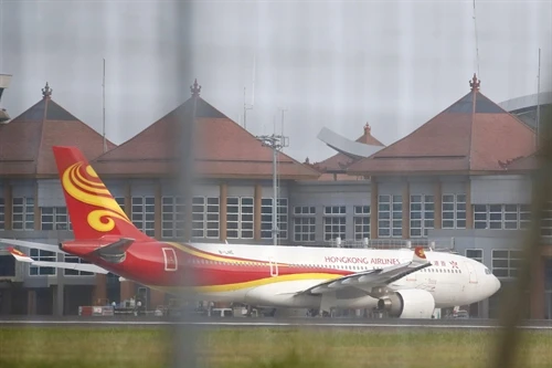 Máy bay của hãng hàng không Hong Kong Airlines hạ cánh khẩn cấp tại sân bay Denpasar, Bali, Indonesia ngày 7/5. AFP/TTXVN
