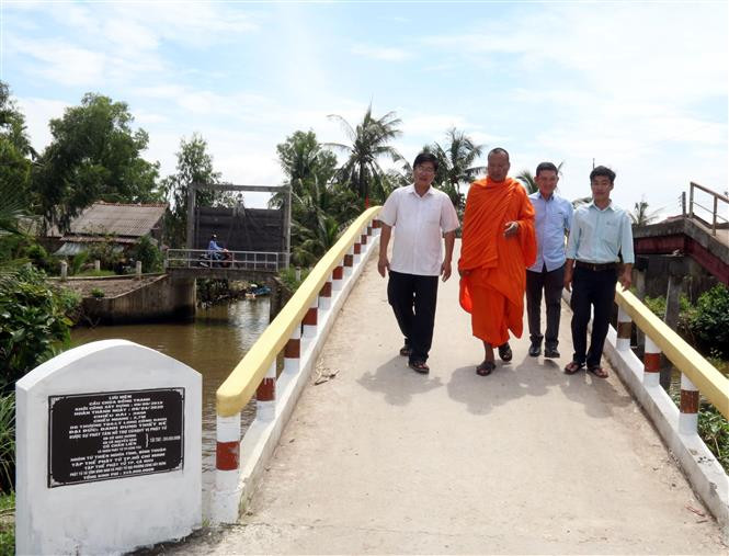 Đại đức Danh Dung đã vận động các tổ chức, cá nhân và người dân đóng góp xây dựng cầu dân sinh phục vụ bà con đi lại thuận tiện, an toàn.