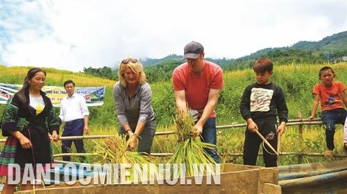 | Du khách trải nghiệm mùa vàng ở xã Lao Chải, huyện Sa Pa. Ảnh: Cao Hương |