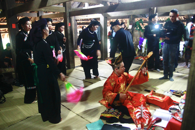Thầy Then cầu xin cho chủ nhà được độ trì, bình an, mùa màng tươi tốt. Ảnh: Phương Loan