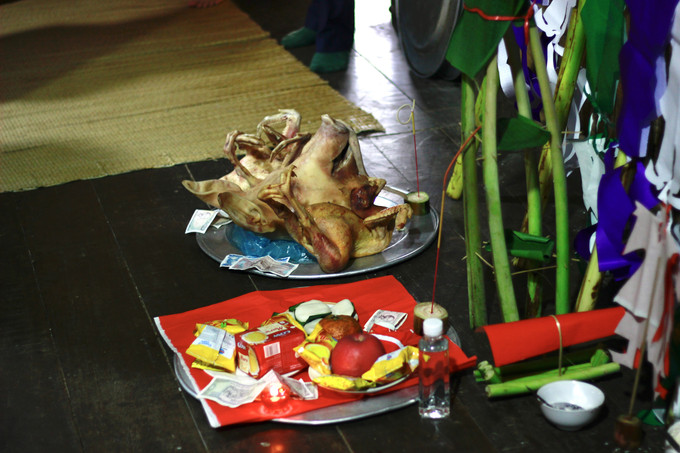 Các lễ vật cho lễ cúng Then. Ảnh: Phương Loan