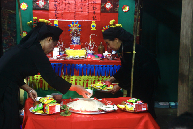 Bà con chuẩn bị cho buổi lễ cúng Then. Ảnh: Phương Loan