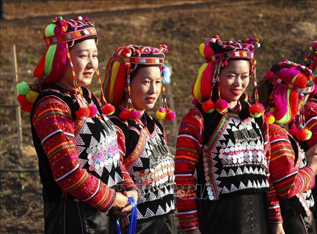 Thiếu nữ Hà Nhì mặc trang phục truyền thống vui xuân. Ảnh: Xuân Tư – TTXVN