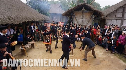 Khi thầy cúng đến nhà, chủ nhà mời ngồi, mời nước và hỏi thăm sức khỏe, nói với thầy cúng nhờ ông cúng hương hỏa tổng thần, Thượng đàn binh, Hạ đàn tượng, Bàn Vương thánh đế, Chủ trạch long thần, Tổng thể gia tiên, Cao chân đại đạo, Tiên đường Tứ phủ về bàn thờ, mời Hạ đàn binh sư phụ cho phép gia đình và dân làng mở lễ hội Tết nhảy.