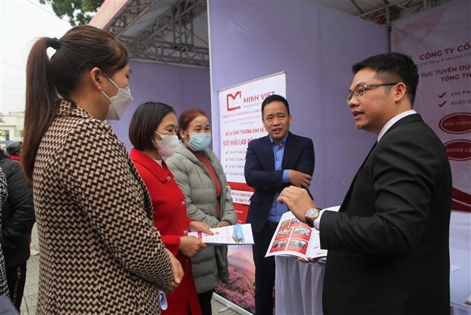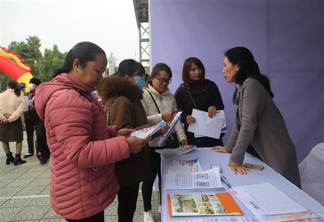 Nhà tuyển dụng đang tư vấn việc làm cho người lao động. Ảnh: Chu Hiệu - TTXVN