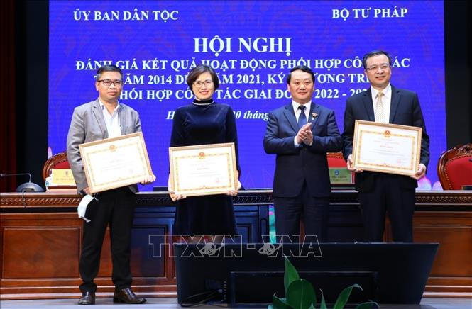 Bên cạnh đó, Ủy ban Dân tộc và Bộ Tư pháp tăng cường phối hợp nghiên cứu, đưa các nội dung liên quan về phong tục, tập quán, bản sắc văn hóa tốt đẹp của các dân tộc thiểu số để pháp luật hóa nhằm bảo tồn, phát huy, phát triển; phối hợp tập huấn, đánh giá, sơ kết, tổng kết việc thực hiện các chương trình, đề án, dự án, chính sách dân tộc; triển khai công tác hợp tác quốc tế, nghiên cứu, chọn lọc điều ước quốc tế liên quan để cùng nhau xem xét vận dụng ban hành các văn bản quy phạm pháp luật về lĩnh vực dân tộc tại Việt Nam.