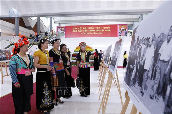 Các đại biểu tham quan triển lãm ảnh tại Đại hội đại biểu toàn quốc các dân tộc thiểu số Việt Nam lần thứ II. Ảnh: Dương Giang - TTXVN