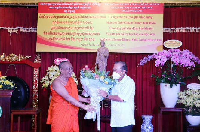 Sáng 15/4, nhân dịp Tết cổ truyền Chôl Chnăm Thmây, Ủy ban Mặt trận Tổ quốc Việt Nam Thành phố Hồ Chí Minh phối hợp cùng Ban Dân vận Thành ủy thành phố đã đến thăm, chúc Tết cổ truyền các chư tăng Phật giáo Nam tông Khmer, tặng quà đồng bào Khmer và trao kinh phí hỗ trợ học tập cho học sinh, sinh viên Khmer trên địa bàn.