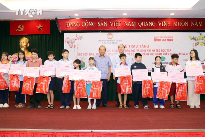 Chiều 1/2, tại Thành phố Hồ Chí Minh, Ủy ban Mặt trận Tổ quốc Việt Nam Thành phố Hồ Chí Minh phối hợp với Báo Người Lao động tổ chức Lễ tặng quà đồng bào dân tộc và trao kinh phí hỗ trợ học tập cho học sinh, sinh viên dân tộc thiểu số có hoàn cảnh khó khăn.