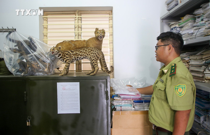 Ngoài ra, cũng trong tháng 8/2024, Chi cục Kiểm lâm tỉnh Tây Ninh tiếp nhận từ người dân ngụ tại khu phố An Bình, phường An Tịnh, thị xã Trảng Bàng, 7 tiêu bản động vật hoang dã gồm: 2 tiêu bản rắn hổ mang chúa, 1 tiêu bản rắn chàm quạp, 1 tiêu bản báo lửa, 2 tiêu bản cầy vòi hương, 1 tiêu bản mèo rừng. Những tiêu bản được Kiểm lâm Tây Ninh xác định thuộc Danh mục loài nguy cấp, quý, hiếm được ưu tiên bảo vệ được quy định tại Nghị định số 160/2013/NĐ-CP ngày 12/1/2013 của Chính phủ về tiêu chí xác định loài thuộc Danh mục loài nguy cấp, quý, hiếm được ưu tiên bảo vệ và danh mục thực vật rừng, động vật rừng nguy cấp, quý, hiếm (được sửa đổi, sung tại Nghị định số 64/2019/NĐ-CP ngày 5/9/2019 của Chính phủ) và Nghị định số 06/2019/NĐ-CP, ngày 22/1/2019 của Chính phủ về quản lý thực vật rừng, động vật rừng nguy cấp, quý, hiếm. Hiện Chi cục Kiểm lâm tổ chức bảo quản tại Kho của Chi cục Kiểm lâm và đang xây dựng phương án xử lý theo quy định.