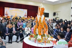 Tối 11/4, tại Hà Nội, Đại sứ quán nước Cộng hòa Dân chủ Nhân dân Lào tại Việt Nam tổ chức Lễ đón Tết cổ truyền Bunpimay 2566 (theo Phật lịch) của nhân dân các bộ tộc Lào.