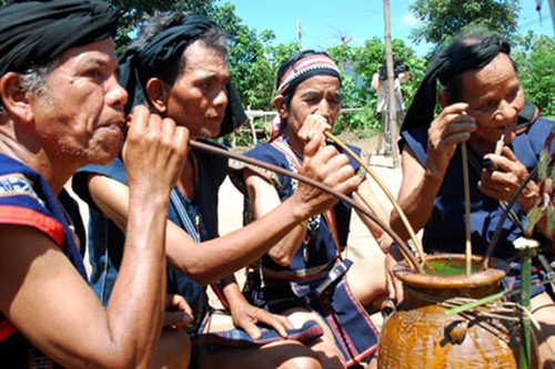 Trong tháng Tết, khi một nhà tổ chức ăn uống, chỉ cần được thông báo, không cần biết gia chủ có mời hay không, người nhà khác cứ đến ăn. Khi đến, họ thì mang thức ăn hoặc gạo đến để góp. Ai góp gì, góp bao nhiêu cũng được. Chủ khách chẳng ai so đo tính toán. Tập tính cộng đồng và sự hồn nhiên trong đời sống của người Jrai là thế. Ăn uống xong, ai ra về cũng được gia chủ biếu một miếng thịt, dù là rất nhỏ, gọi là có quà cầm tay.