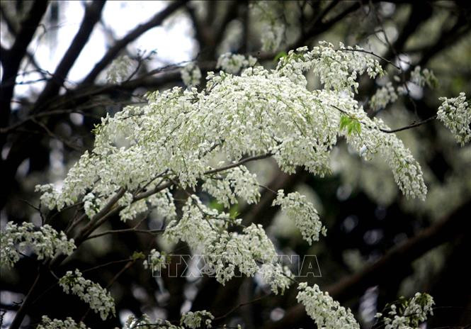 Cây sưa được trồng ở đường Lý Thường Kiệt, thành phố Thái Bình ra hoa làm nổi bật cả 1 góc phố. Ảnh: Thế Duyệt – TTXVN