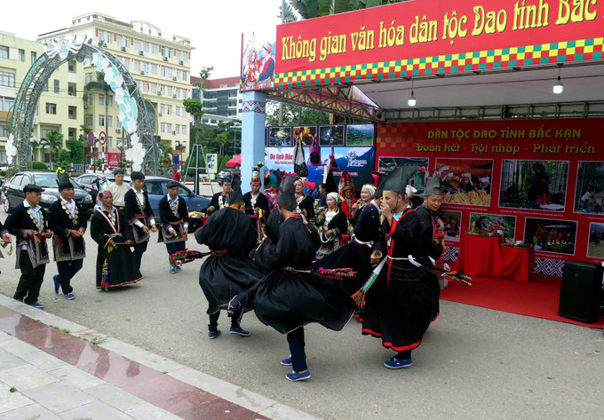 Trình diễn trích đoạn lễ cầu mùa của dân tộc Dao tiền đến từ tỉnh Bắc Kạn. Ảnh: Thu Hằng-TTXVN