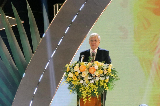 Đồng chí Đỗ Văn Chiến, Bí thư Trung ương Đảng, Chủ tịch Ủy ban Trung ương Mặt trận Tổ quốc Việt Nam phát biểu tại lễ khai mạc. Ảnh: Quân Trang-TTXVN