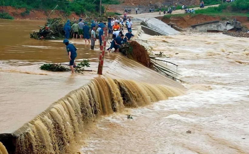 Lũ làm sạt lở 3 cầu tràn trên địa bàn thị trấn Quân Chu. Ảnh:baothainguyen.vn