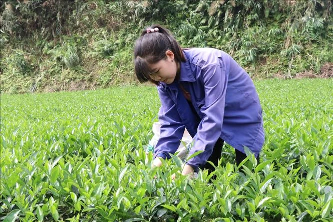 Mô hình sản xuất chè theo hướng hữu cơ tại xã Tức Tranh, huyện Phú Lương. Ảnh: Thảo Nguyên-TTXVN
