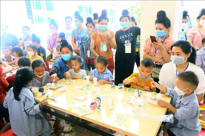Các bệnh nhi tham gia tô tượng tại Chương trình. Ảnh: Quang Quyết-TTXVN