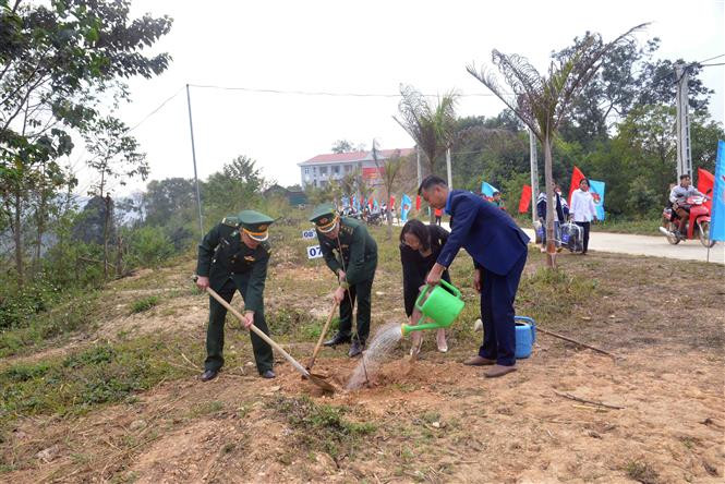 Các đại biểu tham gia trồng cây tại Lễ khởi động Tháng Thanh niên, tháng Ba biên giới năm 2023. Ảnh: Quang Quyết - TTXVN