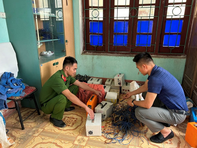 Hàng chục bộ kích điện bị Công an thị trấn Thường Xuân thu giữ. Ảnh: congly.vn