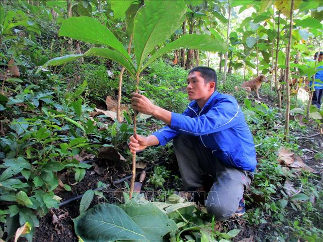 Anh Hà Văn Tình (người Thái), bản Chiền Cồng, thị trấn Mường Lát (Thanh Hóa) đi đầu trong phòng trào trồng rừng với thu nhập 170 triệu/năm. Ảnh: Nguyễn Nam - TTXVN