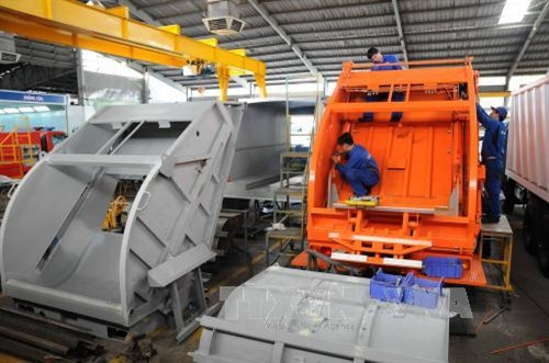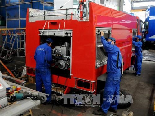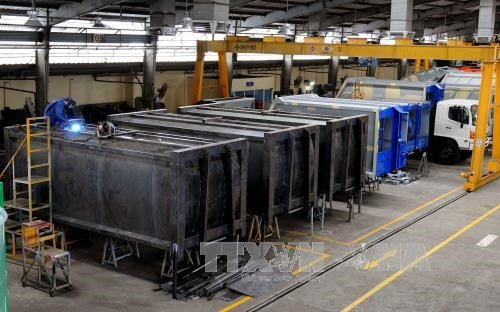Sản xuất xe chuyên dụng tại xí nghiệp cơ khí ôtô An Lạc thuộc Tổng công ty cơ khí Giao thông vận tải Sài Gòn (Samco). Ảnh: An Hiếu - TTXVN
