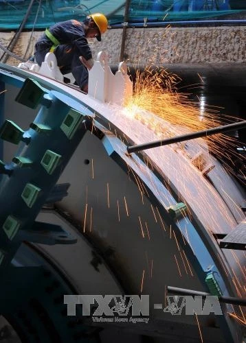 | Thi công, lắp ráp và hoàn thiện các thiết bị của hệ thống đào ngầm TBM. Ảnh: An Hiếu - TTXVN |