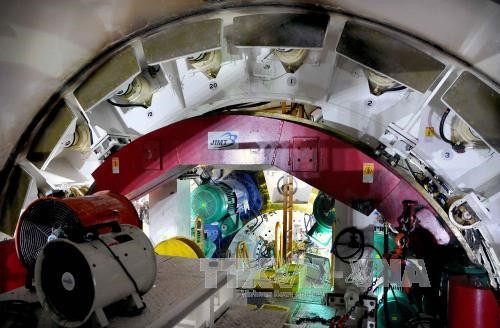 | Thiết bị đào ngầm TBM được lắp đặt để khoan đào dưới độ sâu 17 m dưới lòng đất. Ảnh: An Hiếu - TTXVN |