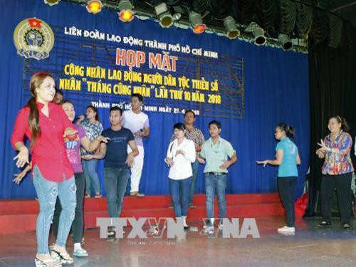 Phát biểu tại buổi họp mặt, ông Tăng Cẩm Vinh - Phó Trưởng ban Dân tộc Thành phố Hồ Chí Minh gửi lời cảm ơn đến tất cả công nhân lao động, đặc biệt là các công nhân lao động dân tộc thiểu số, đã ngày đêm góp sức cho sự phát triển chung của Thành phố. Buổi gặp gỡ hôm nay giúp các công nhân có thêm niềm vui và cơ hội được giao lưu, chia sẻ với nhau trong công việc cũng như trong cuộc sống.